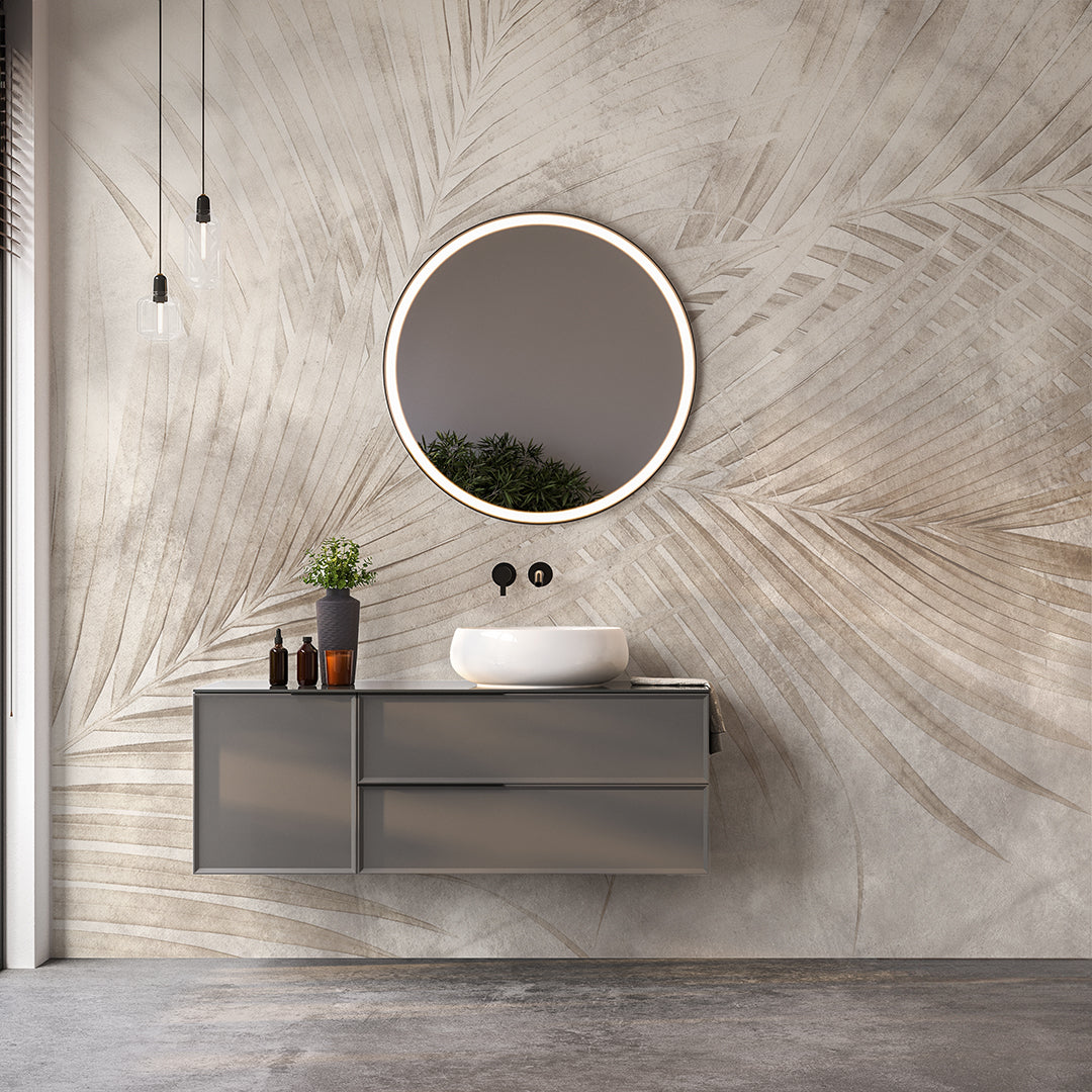 Featuring a delicate leaf motif on a neutral background, this wallpaper adds a touch of elegance and modernity to the environment. Perfect for creating a relaxing and contemporary atmosphere, the "Graceful" wallpaper is ideal for those looking for unique and high-quality design solutions for their bathroom. Discover more about the "Graceful" wallpaper and bring a touch of sophistication to your home.