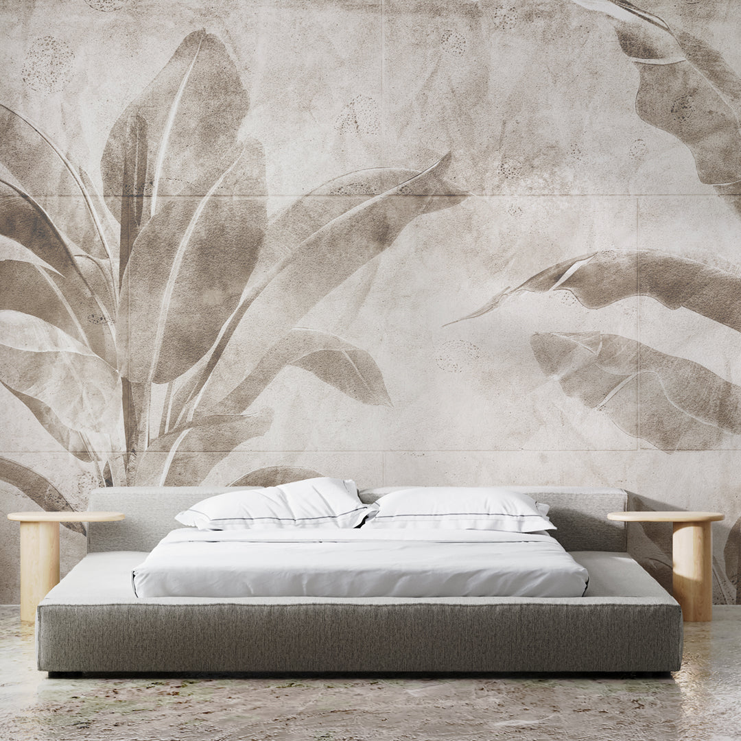 Add a touch of nature and elegance to your home with our custom-made wallpaper. The neutral tones of tropical vegetation create a relaxing and sophisticated atmosphere. Made of durable and washable material, our wallpaper is perfect for any room.